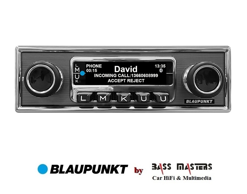 Mit den klassischen Abmessungen der Achsgeräte der 70er, Dreh- und Druckknöpfen sowie der markanten Nadelstreifenfront mit Chromrahmen versprüht das FRANKFURT Stereo MB authentischen Retro-Charme im Oldtimer-Cockpit. Unter dem zeitlosen Äußeren steckt modernste Technik: Ausgestattet mit dem Blaupunkt Codem IV High-End Tuner bietet es neben FM und AM auch DAB+ für exzellenten Empfang und Klang.